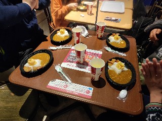 昼食はフードチケットでそれぞれが自由に選んで食べました。カレーライスやピザ、ホットドッグなどがありました。