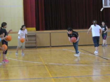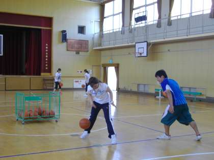プール開放の最終日の午後、先生たちはバスケットボールの研修会で汗を流しました。本校では、昨年度より体育を研究教科として取り組んでいます。昨年もこの時期器械運動の研修会をしましたが、今年はボール運動に焦点を絞ったこともあり、バスケットボールの研修会をしました。教育研究会の体育部の方を講師に迎え、子どもになった気持ちで、部分練習やミニゲームをしました。35度を超す猛暑日でしたが、みなさんとっても楽しそうにプレーしていました。