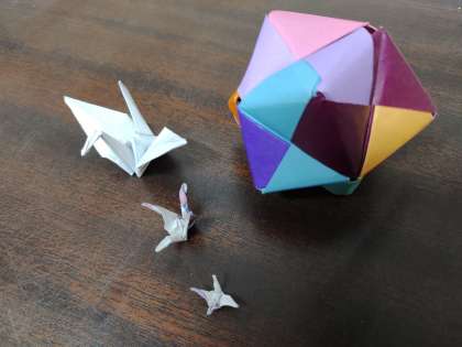 写真は酉島小学校のみんなが千羽鶴を折っているときに、6年女子がプレゼントしてくれたものです。平和を感じながら、校長室に飾っています。ありがとう。