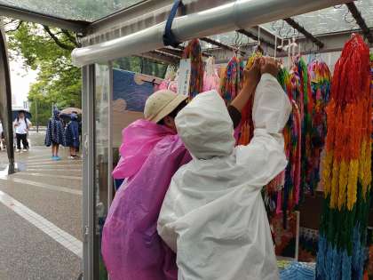 平和記念公園で平和の集いを行いました。全校児童がつくってくれた千羽鶴もかざってきました。