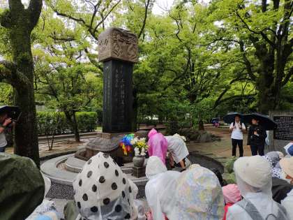 すぐ近くにある韓国人原爆犠牲者慰霊碑には折り紙の亀を置きました。