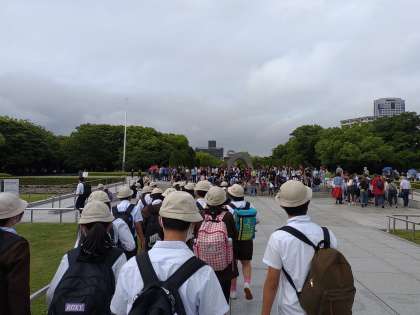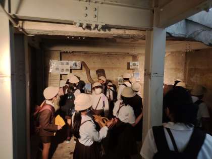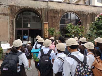 講話を聞いたあと、本川小学校に行きました。被爆した校舎が保存されていました。ちなみにもう雨はやんでいます。