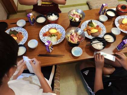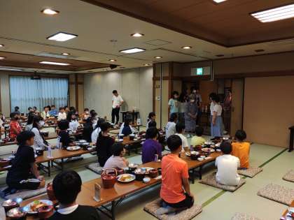 開舎式を済ませ、夕食をいただきました。この後、入浴・リーダー会議の後、21時30分に就寝となります。
