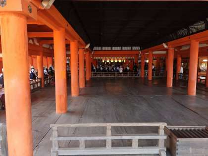 世界遺産の厳島神社です。まだ、鳥居は海の水に浸かっています。