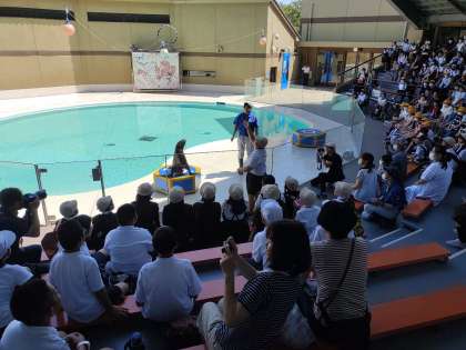 厳島神社のすぐ近くの宮島水族館に着きました。展示見学とアシカショーを見学しました。