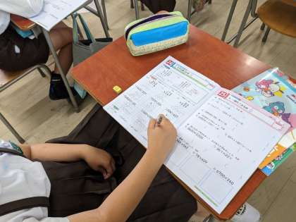 かけ算、わり算での、兆、億、万の位の変わり方に気をつけながら計算する練習をしました。数字が多くてたいへんでしたが、答えを確認しながら計算をがんばりました。