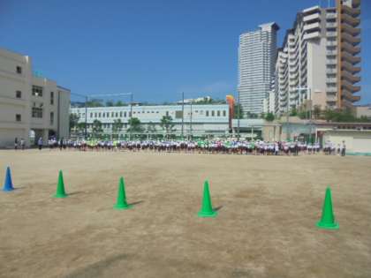 6月29日、児童集会で集会係によるみんな遊びをしました。だるまさんの一日という遊びで「だるまさんが〇〇」の〇〇に動きを入れて、その通りにみんなで動く遊びです。ルールがよくわかっていない児童もいましたが、とにかく元気いっぱい楽しくみんなで遊びました。