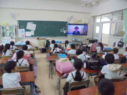 7月10日の児童朝会は気温が高くなっているため、Teamsを使って教室で行いました。友達との毎日の接し方や今月の目標について話がありました。