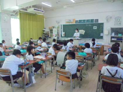 7月18日、連休明けの登校後の学級での様子です。猛暑の続くなか、多くの児童が元気に登校できています。最後まで体調を崩さずに、残り3日間、楽しく過ごしましょう。