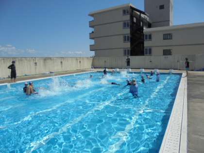 7月21日、夏休みの初日です。今日からプール開放が始まりました。今日は6年生の特練の日です。最初はみんなで「ふしうき」や「バタ足」を練習して後半はコースに分かれて泳ぎました。学年により開放日が異なりますので夏休み前に配布した「酉島小だより」で確認お願いします。