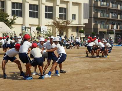4年生は綱引き、5年生はタイヤ引き、6年生は騎馬戦をしました。
