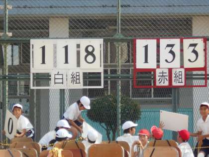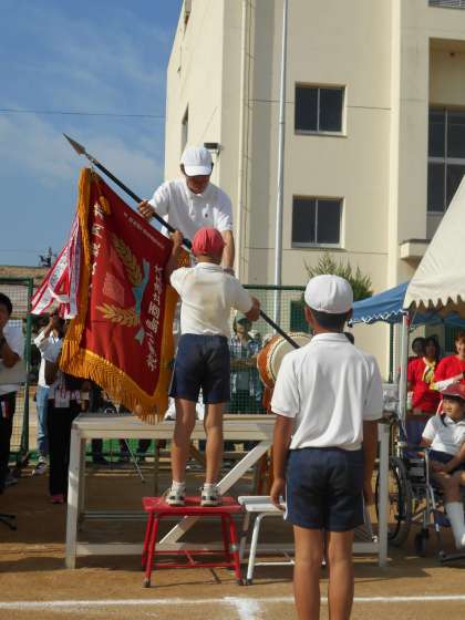 今年は赤組が勝ちました。赤組の応援団のリーダーに優勝旗が授与されました。一人のお休みもなく、全員参加でがんばり、楽しみました。一人一人の心に思い出として大きく残ることでしょう。温かいご声援を頂いたご来賓の皆様、保護者・ご家族の皆様、地域の皆様、ありがとうございました。