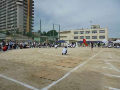 4年生の障害物競走の様子です。なかなか麻袋が難しかったようです。