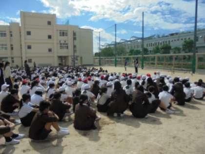 10月10日、火災による避難訓練の2回目を行いました。今回は休み時間に行い、しっかり指示を一人ひとりが聞きながら避難しました。校長先生から実際に火災が起こっていると考えて行動すること、担当の先生からは「お・は・し・も」について確認の話がありました。