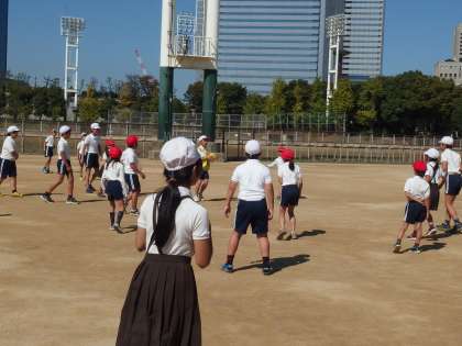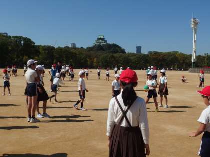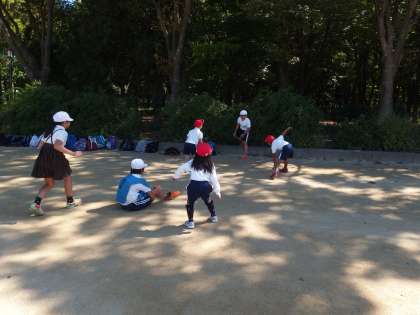 公園の広い広場で、班で考えた遊びをしました。1年生から6年生まで、6年生のリーダーを中心に、協力して楽しむことができた1日でした。