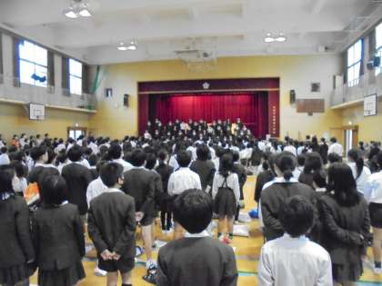 11月10日、酉小まつりの前に新校舎完成記念集会を行いました。校長先生・連合町会長様からお祝いの言葉、そして、子どもたちからのメッセージと校歌合唱を行いました。これからも地域に愛される学校となるよう、きれいに、そして大切に、子どもたちには校舎を使ってほしいものです。