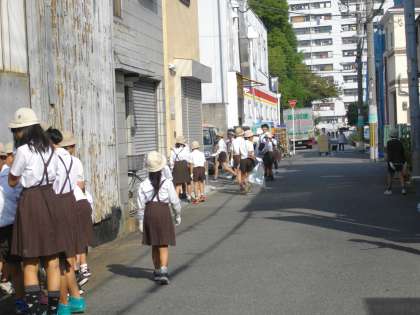 10月21日(水)の5時間目に、全校地区児童会のメンバーで「クリーンUP」の清掃活動をしました。いつも登校時に集合している場所の辺りを、登校班で協力してきれいにゴミ拾いをしました。途中の植え込みの中にもごみがたくさんありました。