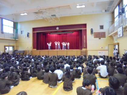 2月22日、今日の児童集会はダンスクラブの発表でした。リズムに合わせてみんなの前で踊ることができ、たくさんの拍手を見ているみんなからもらいました。