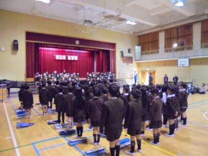 2月28日、6年生の卒業をいわう会を講堂で行いました。卒業式には5年生が出席するため、他の学年が揃って、6年生に対し感謝の気持ちを表すのはこれが最後になります。