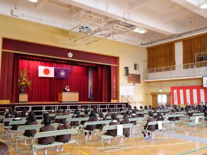 令和6(2024)年度の入学式が行われました。今年度の新一年生は58名です。天候にも恵まれ、ポカポカした春日和のなか、少し緊張した様子で正門をくぐりました。入学式では、お話をしっかり聞き、校長先生のお話にもあった元気なあいさつもできていました。