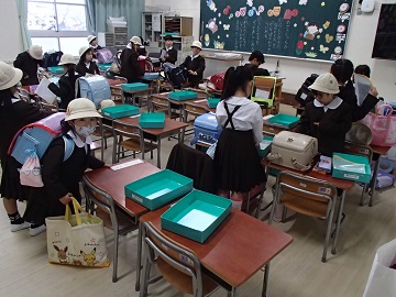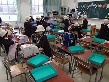 1年生の朝の教室は、荷物を片づけたり、連絡帳を出したり、なかなか忙しいです。