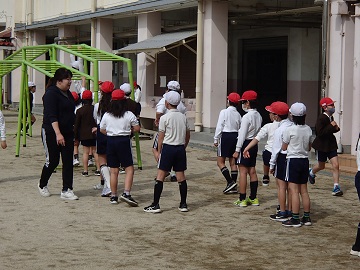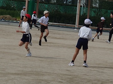 4年生は、運動場で、思いっきり、鬼遊びや遊具で汗を流しました。