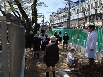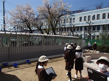 4年生の理科では、自分の調べたいところを決めて、タブレットで写真を撮りました。桜がきれいに咲いていました。