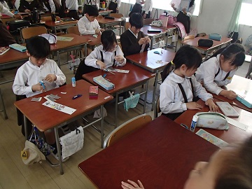 4月19日(金) 6時間目の終わりごろから、いくつかの教室をのぞいてみました。3年生では、日直のカードを作っていました。きれいに色をぬったり、自分の写真を貼ったり、すてきなカードができて、とてもうれしそうでした。早く終わった子から帰る用意をしています。