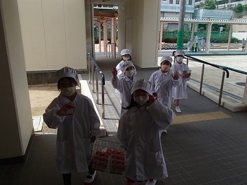 これまでは、6年生の手を借りていましたが、今日からは自分たちで配膳します。