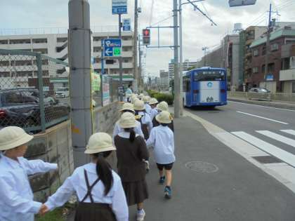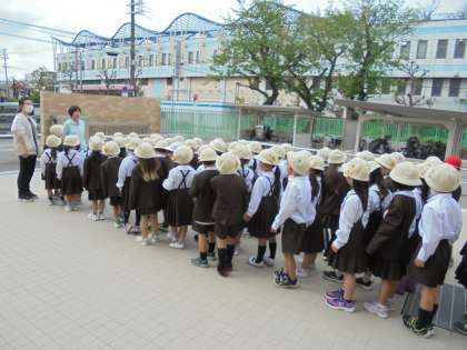 5月からの遠足に向けて交通に注意して安全に行動できるように、全学年に交通安全指導を行いました。