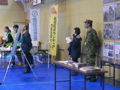 11月8日(日)、雨の中酉島地区の津波を想定した防災訓練が行われました。まず各地域で避難して、小学校へ避難して来られました。酉島地区は独自で防災組織を立ち上げ、今回はその訓練も兼ねて住民の方にも紹介しながら進められました。区役所や危機管理室、自衛隊との連携もあり、市バスも初めて参加して、中身の充実した訓練でした。