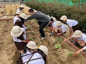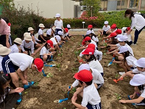5月15日、2年生が学習園にサツマイモの苗を植えました。