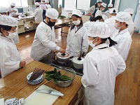 今日は、5年生が調理実習をしていました。ホウレンソウとジャガイモをゆでました。