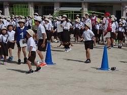 集会委員の説明と見本を見て、全校で一斉に、ゲームを楽しみました。