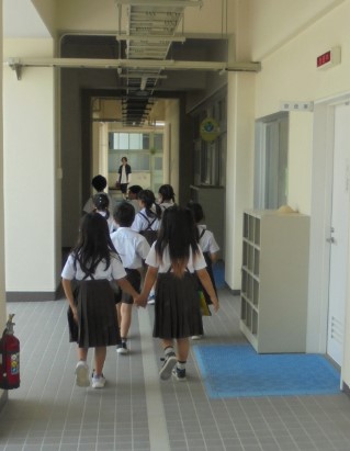 今日は、2年生が1年生の手を引きながら学校を探検しました。一つずつ教室の説明をして、確認ができたらシールを貼りました。1年生は、初めて訪れる教室を不思議そうに見ながら説明を聞いていました。昨年度、2年生は手を引かれて案内される小さい1年生だったのにお兄さんとお姉さんになったなあ…と成長を感じました。2年生に感想を聞くと、「1年生にたくさん説明できて楽しかった。」「1年生と一緒に学校を回れて楽しかった。」と満足気でした。