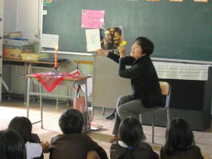 11月12日(木)の2.3時間目に、4.5.6年生の読み聞かせがありました。シフカブールカさんに来ていただいて、学級教室で行いました。とても上手で工夫を凝らした読み聞かせに、どの学年も聞き入っていました。