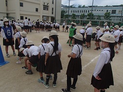 集会委員会の児童を中心に、みんなが仲良くなるためのゲームをします。