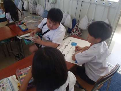 輪飾りを作ったり、入口、出口などの掲示物を作ったり、ポスターを作ったり、それぞれに工夫して活動していました。