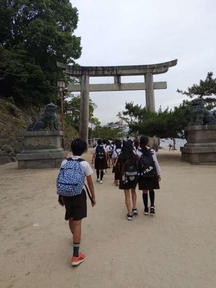 宮島に着きました。水族館、厳島神社の見学、おみやげ購入と続きます。