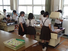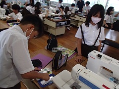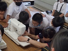 参観の前の日、9月5日、5年生は家庭科室で「ミシン」に取り組んでいました。
