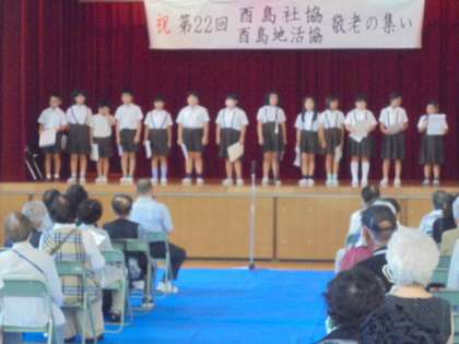 多くの方が来校され、本校から4年生の有志の14名があいさつと歌のプレゼントを行いました。また、