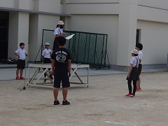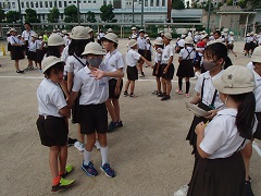 9月19日(木)この日は児童集会がありました。二学期最初の児童集会です。今回は、「もうじゅうがり」にヒントを得たオリジナルゲーム「学校へ行こう」でした。集会委員の説明を聞いてからゲームが始まりました。異学年でグループを作って楽しくできました。