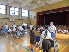 リハビリテーションセンターの方々にきていただきました。4年生は車いす体験の学習をしました。