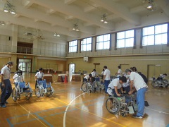 お話をしっかりと聞き実際に車いすにのったり押したりする体験をしました。
