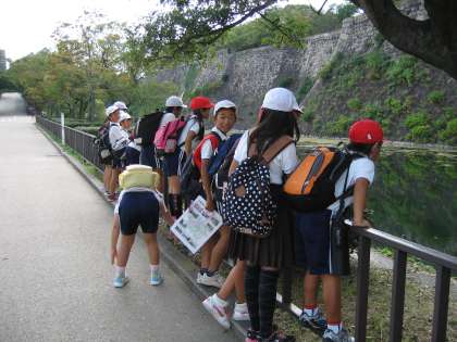10月10日(木)快晴。酉島小学校では、毎年恒例の全校遠足で「大阪城公園」に行きました。
