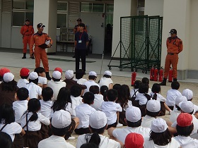 今回は特別に、此花消防署からレスキュー隊の方に来ていただいて、ご指導いただきました。