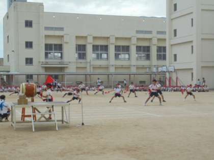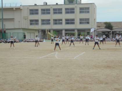 応援団が大きな声で力いっぱい応援練習している姿をみて、子どもたち全員が精いっぱい出せる声を出して練習することができていました。