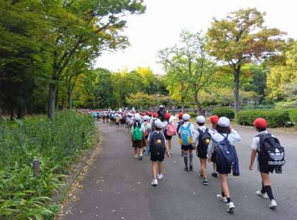 10月24日、1年生と2年生は大阪城公園へ遠足に行きました。電車内でのマナーをしっかり守って、静かに移動することができました。