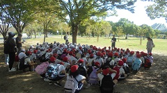広い芝生のある場所でお弁当を食べたり友だちと遊んだりしました。