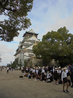 大阪城の天守閣に登りました。たくさんの資料を見て学ぶことができました。